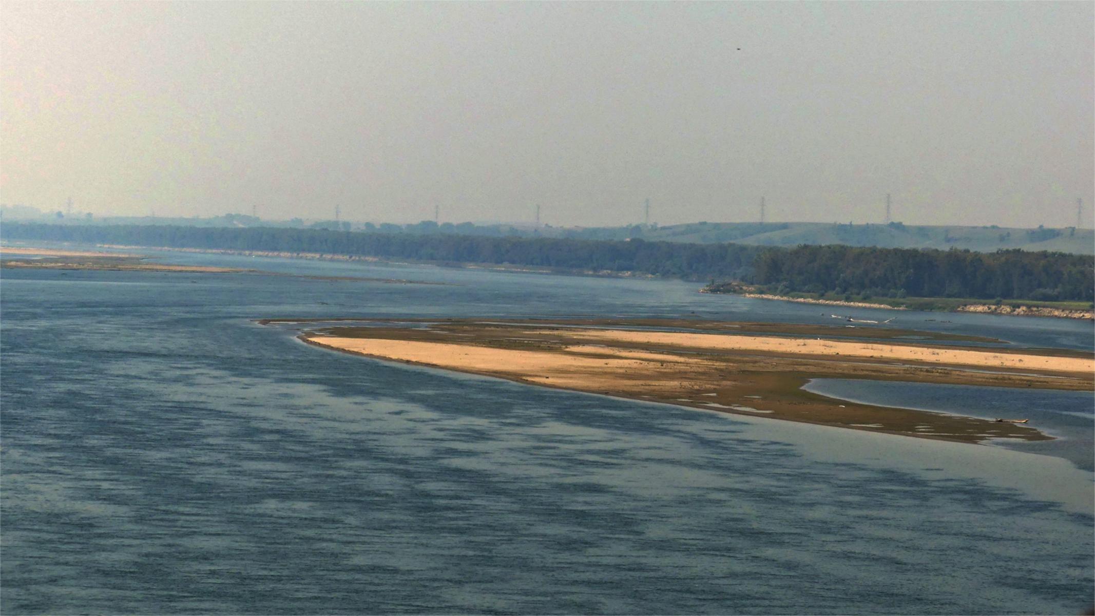 Es ist ein wolkenverhangener Tag, als wir erneut den Missouri überqueren und dabei wieder einmal sehr schön die großen Sandbänke sehen können.